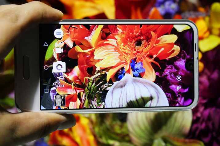 カメラは「AQUOS R」と同じように超接写が可能。発表会会場は少し暗かったが、手ぶれなどもなく片手でパシャッと撮影できた。本モデルは画像エンジンに力を入れて、見た目に近い色合いの写真を撮影できるという