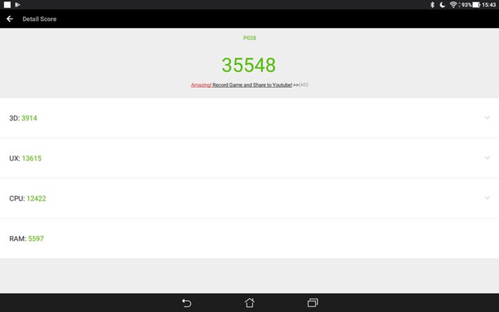 「AnTuTu Benchmark」のテスト結果は“35548”。高性能と言うには及ばないが、基本的な動作はこなしてくれる
