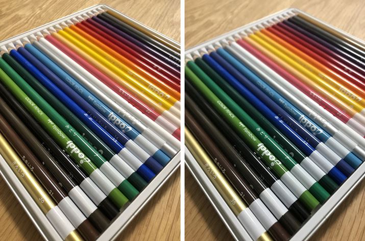 こちらも左がiPhone X、右がiPhone 7 Plusで撮影した写真。微妙な違いだが、緑やゴールドを見ると、左のiPhone Xのほうが鮮やかだ