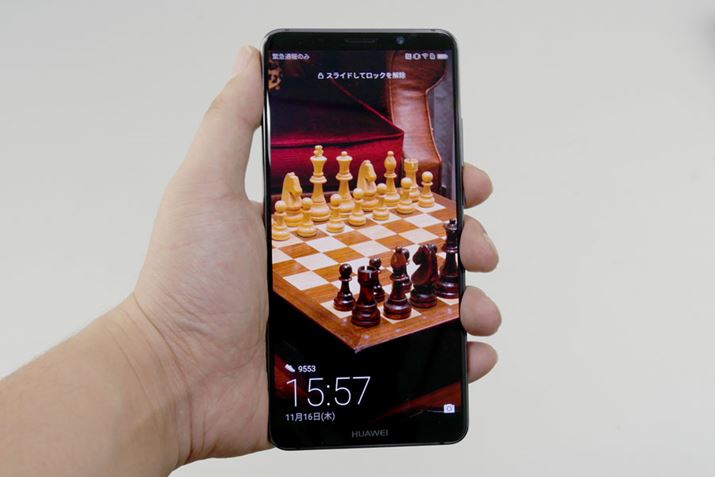 「Mate 10 Pro」のディスプレイは、約6.0型の有機EL(2160×1080)パネル。昨今主流になりつつある狭額縁デザインを採用したことにより、81.61%という高い画面占有率を誇る。本体前面のほとんどがディスプレイのため、高いレベルの視聴体験をもたらしてくれる。