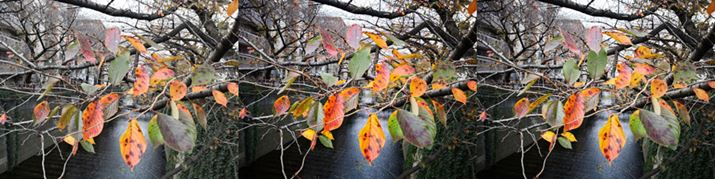 手動で設定するモードで気に入ったのが「フィルムモード」。ライカが監修した3つのプリセットモード「標準」「鮮明な色」「ソフトな色」が用意されていて、それぞれ異なる色味を表現する(写真は左から「標準」「鮮明な色」「ソフトな色」)