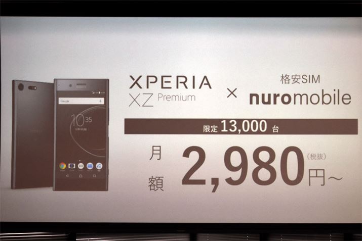 ソニーネットワークコミュニケーションズは、 同社が運営するMVNOサービス「nuroモバイル」において、「Xperia限定 プレミアム帯域オプション」(以下、プレミアム帯域オプション)の提供を、2017年11月28日より開始する。あわせて、その対応スマートフォンとして、ソニーモバイルのハイエンドスマホ「Xperia XZ Premium」を限定13000台で提供する。