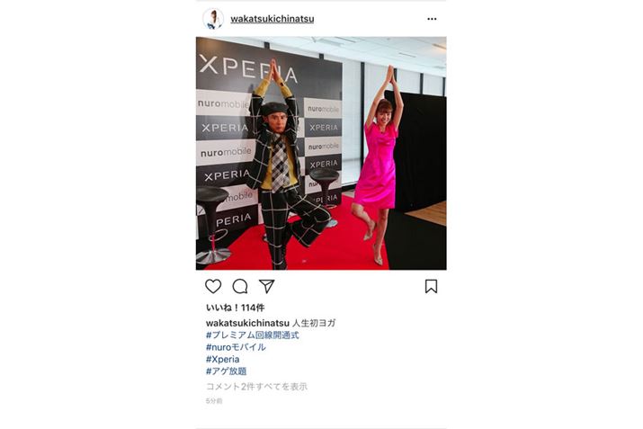 nuroモバイルの記者発表会において、タレントの若槻千夏さんが「Xperia XZ Premium」で撮影した写真を「Instagram」にアップ