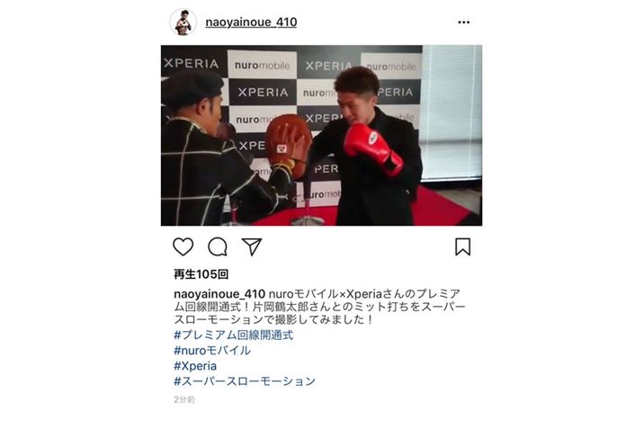 記者発表会において、プロボクサー・井上尚弥さんのミット打ちを、「Xperia XZ Premium」のスーパースローモーションで撮影。その動画は当人の「Instagram」にアップされている