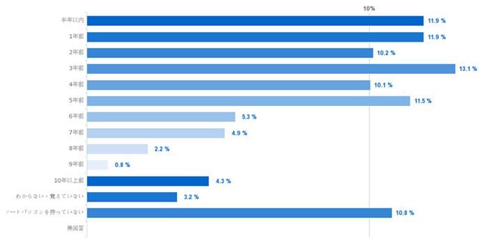 現在ご使用中のノートパソコンの購入時期をうかがいました。
