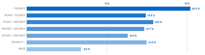 もっとも多かったのは「50,000円以下」で20.4%。ここ最近、ノートパソコンの低価格化が進んでいますが、2割程度の方が、5万円以下で購入可能な低価格モデルを選んでいます。そのほかの価格帯は比較的まんべんなくバラけているようで、ご自身の利用目的や利用スタイルに合わせて、さまざまな価格帯の製品を選んでいることが見て取れます。