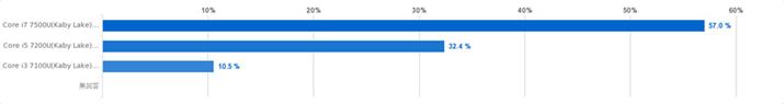 選択肢は3種類。いずれもインテルの最新プロセッサー「Core i」(Kaby Lake)シリーズで、「Core i7 7500U」「Core i5 7200U」「Core i3 7100U」の3種類をあげましたが、ここでは圧倒的に、ハイエンドモデルの「Core i7 7500U」(57.0%)が人気という結果に。やはり、理想のノートパソコンは処理速度もゆずれない、というユーザーの皆さんの思いが伝わってくるようです。