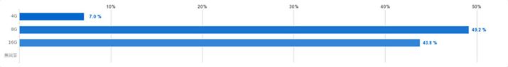 選択肢は「4GB」「8GB」「16GB」の3種類を用意しましたが、一番多かったのは、真ん中の「8GB」(49.2%)で、次点に「16GB」(43.9%)がつけるという結果になりました。メモリー容量は多ければ多いほど快適というのが、パソコンの基本ですが、それでも8GBという回答が多かったのは、おそらくそれによってコストが上がってしまうことを皆さん危惧されたのではないかと思います。確かにメモリーは16GBあったほうが快適ですが、それで数万円価格が上がるくらいなら、現状のWindows 10環境では十分快適とされる8GBのほうが現実的であろうと判断される方が多かったのでしょう。