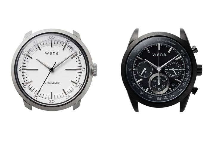 左が「wena wrist Mechanical head」(ホワイト)で、右が「wena wrist Solar head」(クロノグラフ/プレミアムブラック)