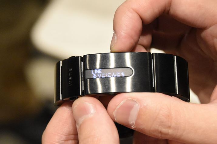 スマホに届いたLINEの新規メッセージも通知&表示される。ディスプレイ表示は、大きめの文字で1行か、小さめの文字で2行かの切り替えが可能で、スクロールして全体を確認できる