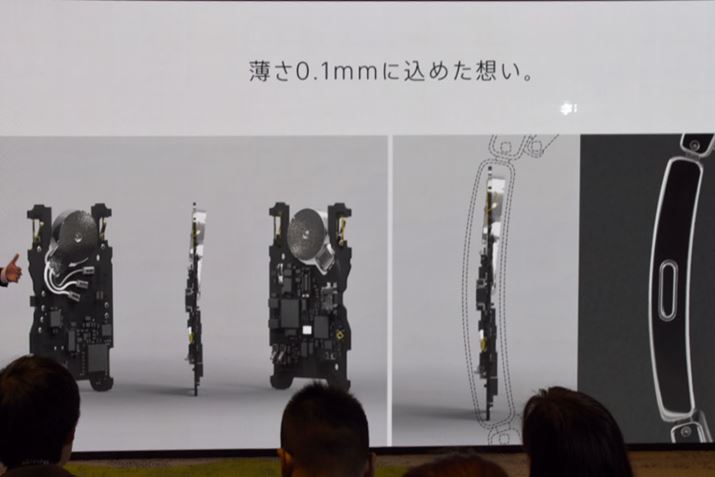 バンド内部の電子部品を、外装の曲線に沿わせるように基板上に実装して薄さを追求。さらに、従来モデルから幅を約2mm小さくすることで小型化を実現した