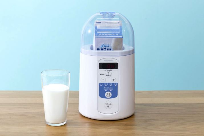 また、市販の牛乳パックの容量に合わせて、500mlと1000mlのモード設定に対応。カスピ海ヨーグルトや甘酒など4種類の自動メニューを搭載しており、自分で温度と時間を設定する必要がなくなり、ボタン1つで温度と時間を自動で調節することができる。