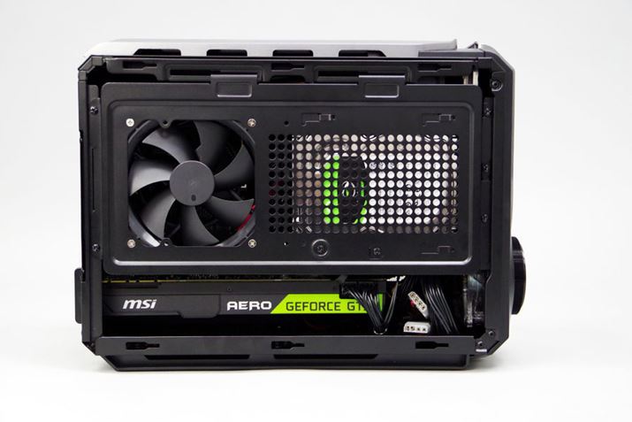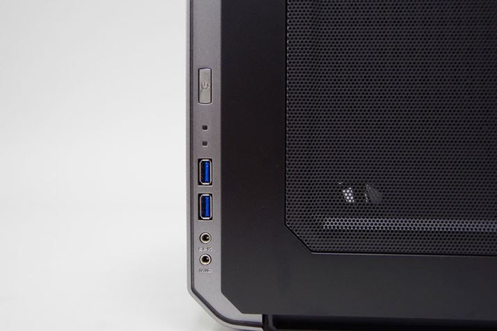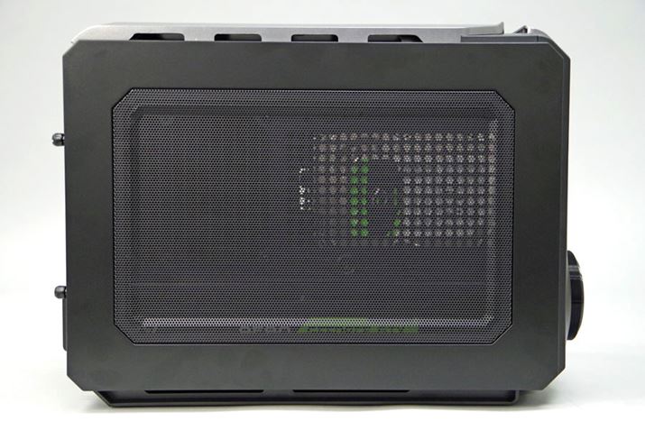 冷却効果を高めるため、側面や底面はメッシュ地になっているほか、前面の丸形ファン孔から空気を吸引し、背面の廃熱ファンへと導くエアフローが実現されている