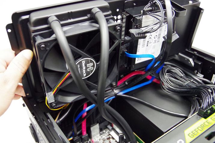 インナーパネルの裏側はこんな感じ。ラジエーターの裏側に大型の薄型ファンが装備され、冷却効果を高めている。このため、静音設計というわけではない点は注意
