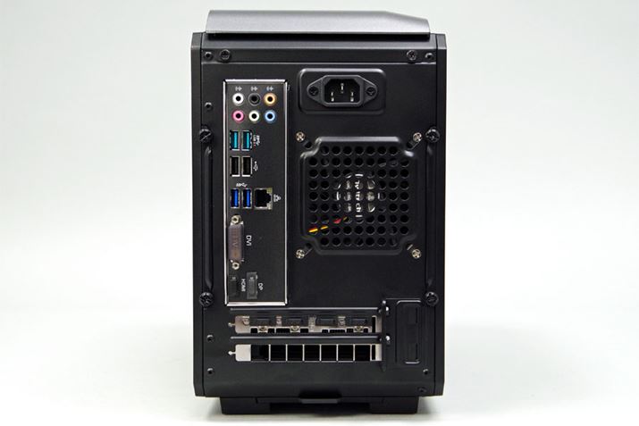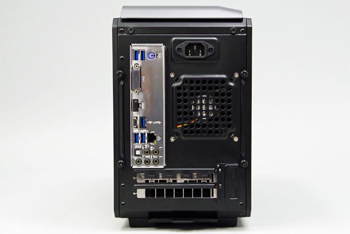 「Ryzen 7(空冷)」モデルのリアパネル。USBポートはこちらも6基だが、その内訳は、USB 2.0×4、USB 3.0×1、USB 3.1(Type-C)×1となっている。Type-Cポートを備える点が、「Core i7(水冷)」モデルとの大きな違いだ