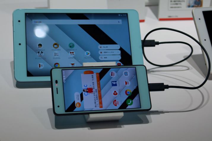 Qua tab QZ8は、出力0.5Aのモバイルバッテリーとしても利用可能。いざという場合は、スマートフォンなどを充電できる