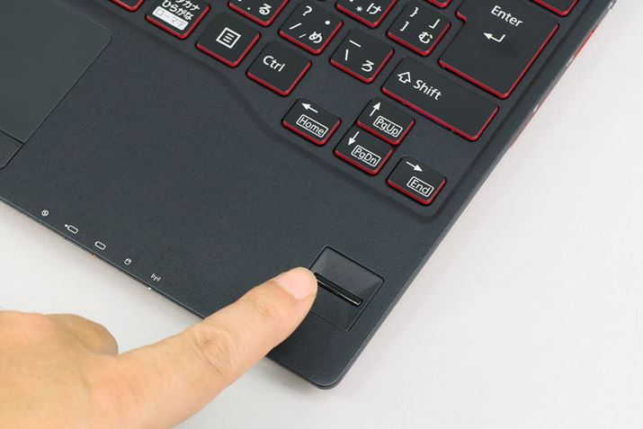 「Windows Hello」対応の指紋認証機能を搭載。タッチ方式が増えつつあるが、本モデルは昔ながらのスライド方式。使い勝手に大きな差はない