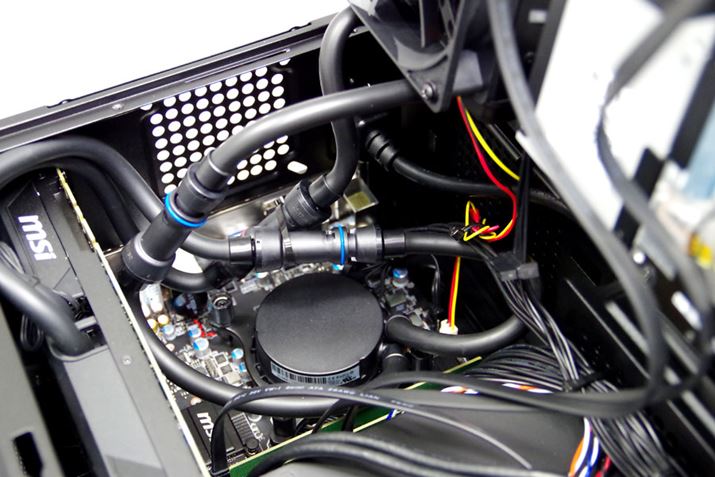 一般的なパソコンでは、ファンによる空冷で、CPUやグラフィックボードなどから発せられる熱を冷却する。これに対して、ホースやラジエーターの中を流れる液体を使って効率的に廃熱する方法が水冷であるが、空冷よりも効率的に冷却できるというメリットがあるいっぽうで、メカニズム的に複雑になるため、どうしても高価になってしまうというデメリットもある。このため、今では、一般的なメーカー製パソコンはもとより、マウスのようなBTOメーカーのラインアップの中にも、なかなかこの水冷システムを搭載する製品を見ることはなくなってきた。