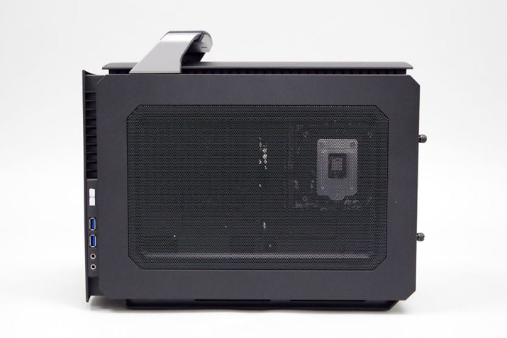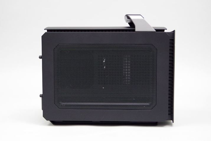 左右の側面はメッシュ状のカバーで覆われており、内部へのエアフローを効率的に行う。このカバーは指でも回せるネジ2本で簡単に取り外せる