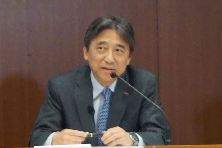 記者向け決算報告会で、「ドコモ光セット割」の改定を発表するNTTドコモの吉澤和弘社長。他社の大容量プランへの対抗措置だ