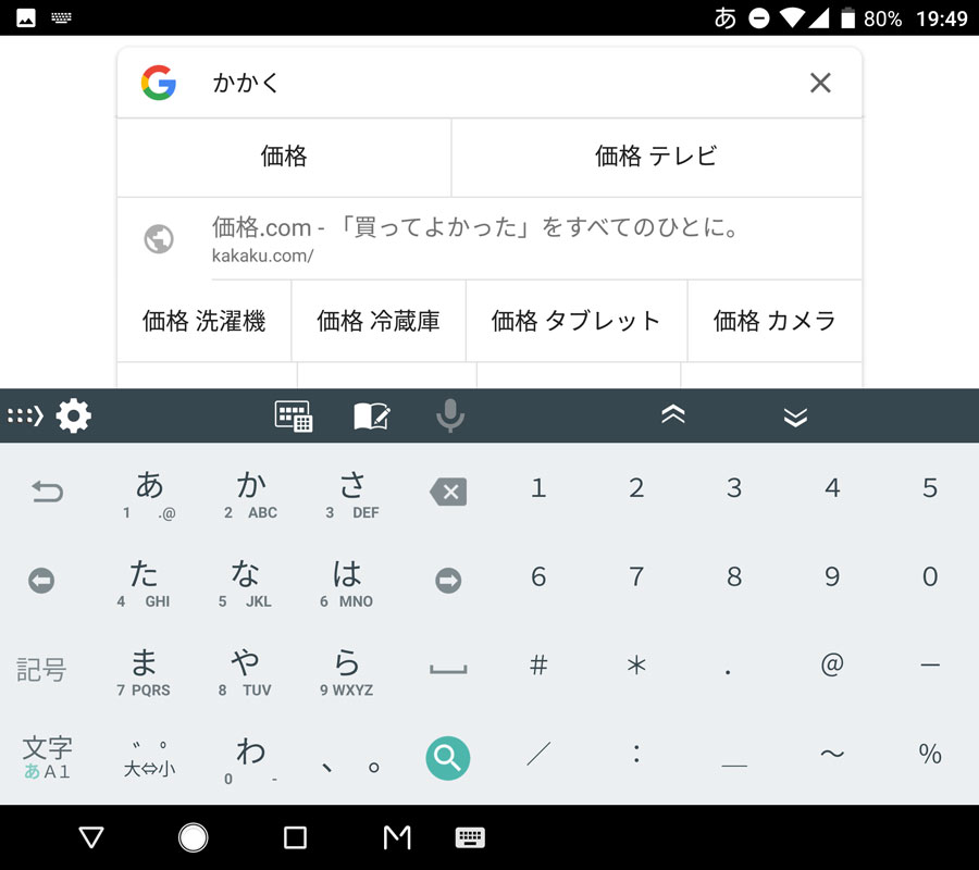 画面が広いため、かな入力とテンキーを同時に表示する、ソフトウェアキーボードの表示でも余裕がある
