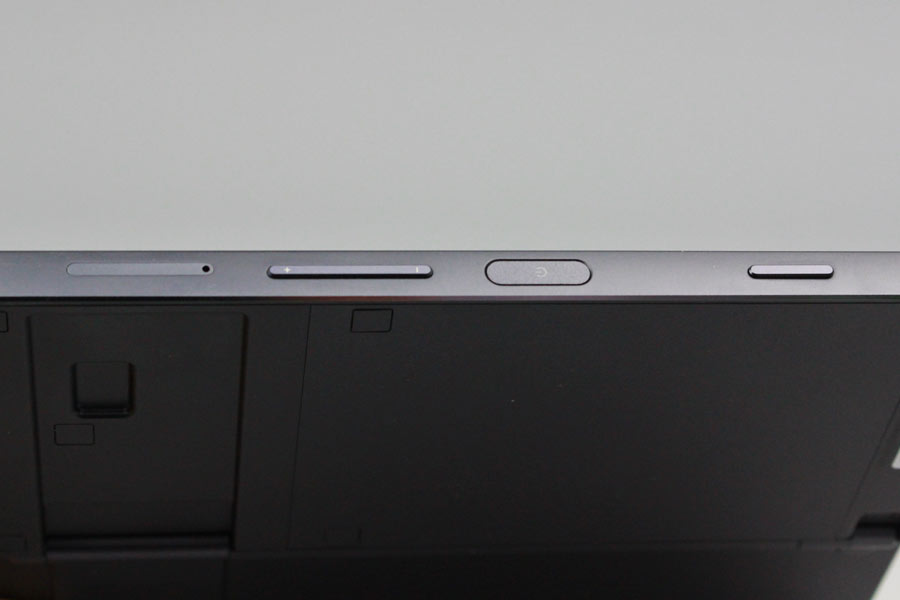 全般に機能面はシンプルが、側面の電源ボタンは指紋認証センサーを兼ねている。このほか、スクリーンショットやカメラの起動が行えるファンクションボタンも備える