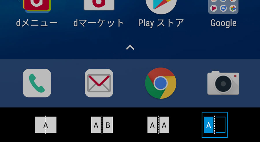 左右に別の画面を表示させるモード。指2本を使ったジェスチャーで表示するアプリを入れ替えることもできる
