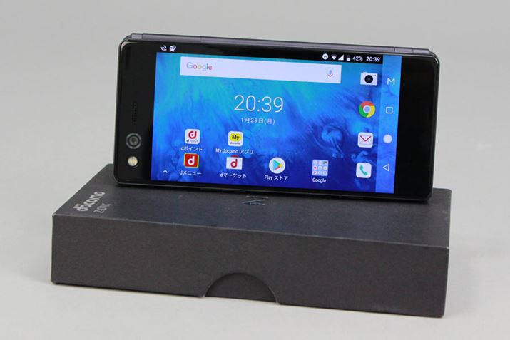 折り畳み式のボディに、2つの画面を備えた「M(Z-01K)」(ZTE製。以下、M)は、折り畳めば1画面、ボディを広げれば2画面のスマートフォンとして利用できるユニークなAndroidスマートフォンだ。