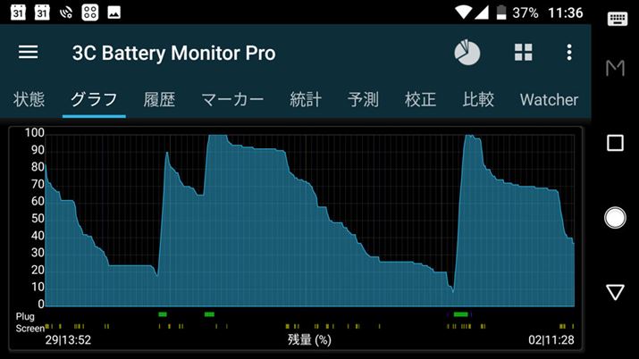 もう少し使い続ければ、本機のバッテリー消費のクセが把握できそうだが、電池使用量を見ると、上位から「画面」が19%、「セルスタンバイ」が8%、「アイドル状態」で7%となっているので、やはりディスプレイの消費電力が大きそうだ。いずれにせよ、筆者の利用ペースで「M」を1日持ち歩くなら、モバイルバッテリーか充電器が必須となる。