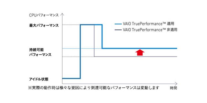 VTPの動作イメージ。最大パフォーマンスではなく、その後の持続可能パフォーマンスを高く保つことで性能を高めている