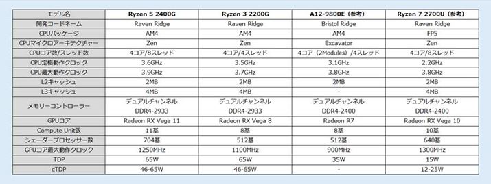 ZenアーキテクチャーのCPUとVegaアーキテクチャーのGPUを組み合わせた “Raven Ridge(レイヴンリッジ)”をベースにした初のデスクトッププロセッサーで、「Ryzen」シリーズの投入でCPU市場で勢いを増しているAMDが、今年初のデスクトッププロセッサーとして投入するモデルでもある。