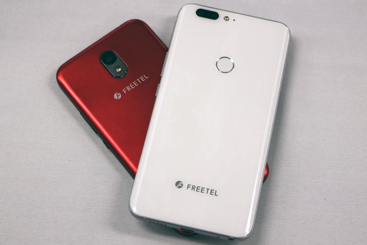 新生FREETELから発表された「REI 2 Dual」(右)と「Priori 5」(左)を発表。従来は外注していた部分をFREETEL社内ですべて内製したという新端末。製品の企画はプラスワン・マーケティングが行ったものだ