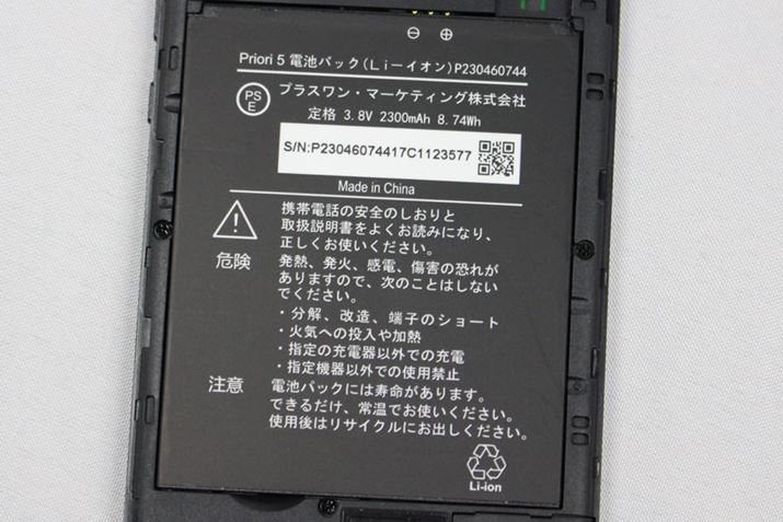 交換可能なバッテリーパックは容量2,300mAh。バッテリーパック自体は、FREETEL製品を取り扱う家電量販店や直販サイトを通じて販売される