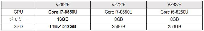 続いて、「dynabook VZ82/F」のスペックをチェックしていきたい。