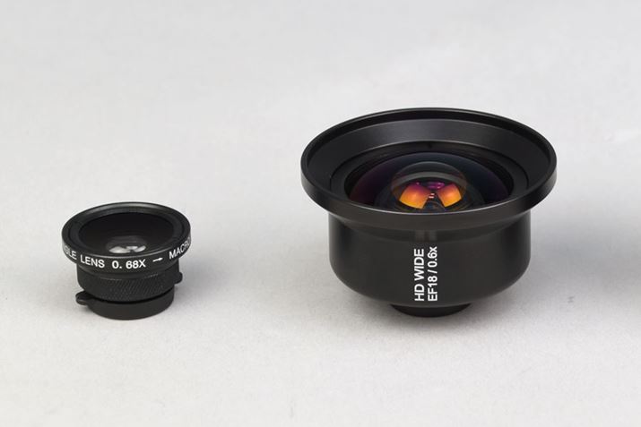 「bitplay SNAP!」シリーズ専用レンズの2機種も試用レビュー。左が「ワイドアングル+マクロレンズ」、右が「プレミアムHDワイドレンズ EF 18mm」