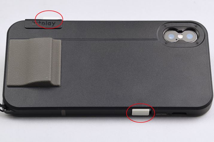 「bitplay SNAP! X」のダブルレンズマウント。デュアルカメラ用の穴がネジ穴になっている