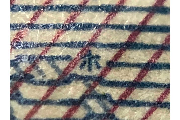 「マクロレンズ」装着によって、1,000円札の模様に隠された文字「ニホン」の「ホ」がここまでくっきりと撮れた