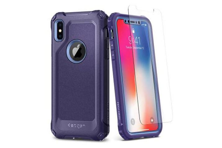 iPhone X専用モデル。2枚の保護ガラスも同梱されており、ボディのあらゆる方向を保護できる。デザインはタフネス性能を強調しつつ、側面に光沢処理が施されており、よりダイナミックな仕上がりだ。カラーバリエーションは、ディープパープル、ミッドナイトブルー、シャンパンゴールド、アーミーグリーン、ガンメタル、ブラックの6色。直販価格は5,990円(税込)。