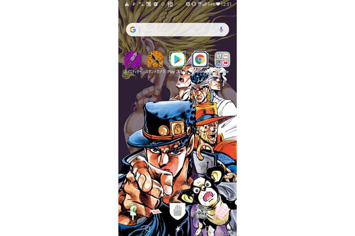 第3部「スターダストクルセイダース」を「テーマ」にセレクトしてみた。主人公の空条承太郎らジョースター一行のダイナミックなイラスト配置がかっこいい。そして、そのうしろにはDIO! アイコンやウィジェットに隠れてしまっているが……