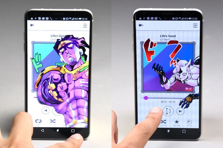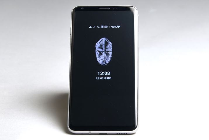 「V30+ L-01K」の詳細については下記の1週間使用レポート(au向け端末「isai V30+ LGV35」のレビュー)を読んでいただくとして、本稿では本機に詰め込まれた「ジョジョ」のコンテンツを中心にレビューしていく。