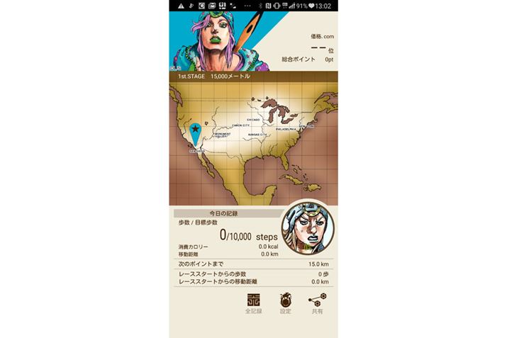 「ジョジョ」のコンテンツは、上で紹介したもの以外にもまだまだある。実際に歩いた歩数に応じて、「STEEL BALL RUNレース」(第7部「スティール・ボール・ラン」の舞台となる大陸横断レース)のコースを仮想的に踏破できる歩数計連動アプリ「SBRトラッカー」や、メールや情報の受信を知らせてくれる「セックス・ピストルズ」(第5部「黄金の風」に登場するグイード・ミスタのスタンド)のマチキャラなど、1日中遊べるコンテンツが盛りだくさんだ。