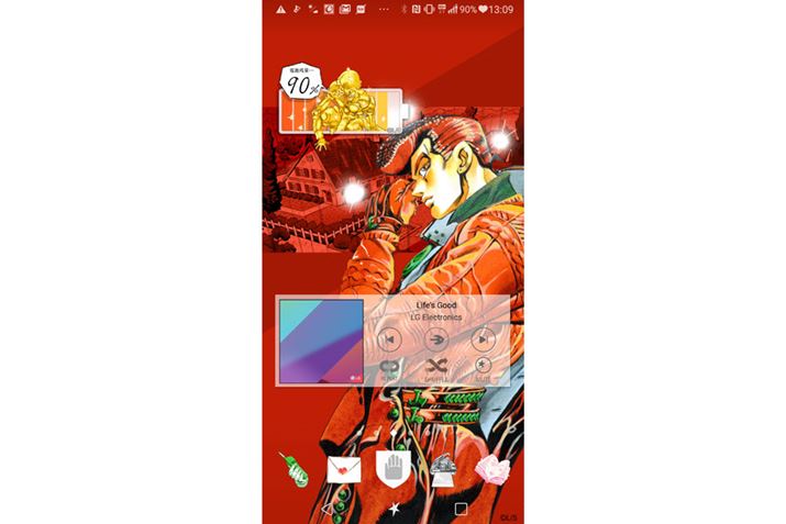 「ジョジョ」の世界観に合わせた専用ウィジェットも搭載。写真左上のウィジェットは、第4部に登場する、電気を操り、電気と同化するスタンド「レッド・ホット・チリペッパー」のバッテリー表示。バッテリー残量が減ってくると、「レッド・ホット・チリペッパー」の表情も弱まっていく