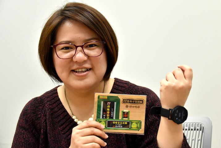 シックス・アパート広報およびSix Apart ブログ編集長、Vivaldi ブラウザ広報と、一人三役をこなす多忙なワーママ、壽かおり氏。シックス・アパートの「オウンドメディア勉強会」も主催している。手に持っているのは、神田明神の「IT情報安全守護(ITお守り)」