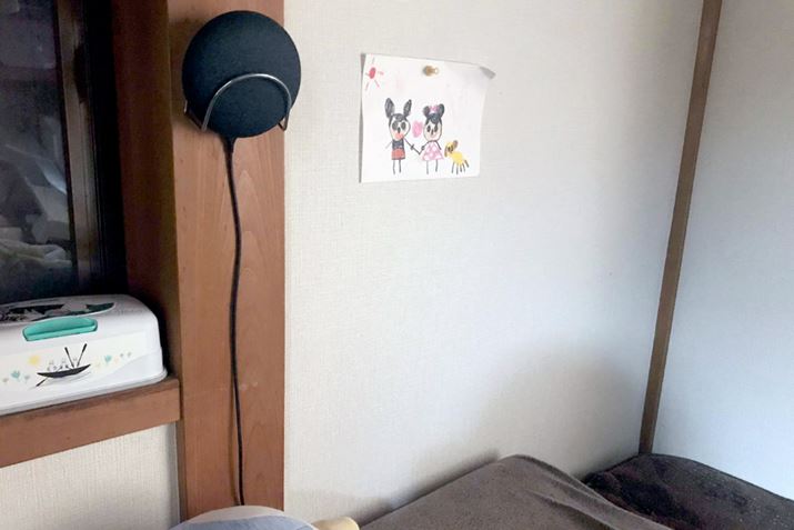 壽家で使っている「Google Home」。寝室の壁に取り付け、寝かしつけの際、照明やテレビ、エアコンのオン/オフに活躍している