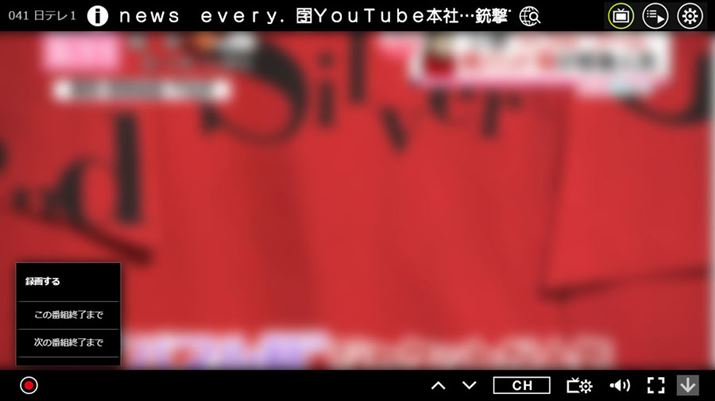 WindowsとmacOSのソフトウェア「Xit mobile」のUIはまったく同じ(写真はWindows版)。上部のバーにはチャンネル名と番組名を表示。画面左下にある赤いボタンを押すと録画できます。録画は、「視聴中の番組終了まで」と「次の番組終了まで」を選択可能