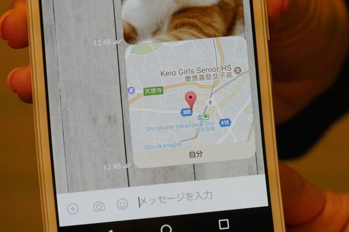 地図情報も送信可能。送信時間の右側に“チェック”が表示されていますが、これは既読のこと。なお、既読機能はオン/オフの切り替えができます