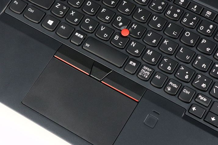 ThinkPadのトラックポイントは、ホームポジションから手を動かさずに作業できるのがメリット。試用したモデルは指紋センサーも備えていた