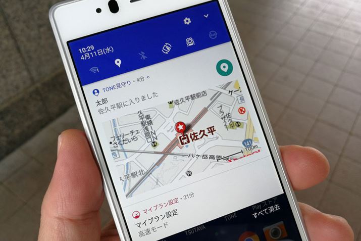 TONE見守りアプリの起動時に表示される子どもの位置情報は、最大で30分前の所在地だ。現在地の情報を更新することも可能だが、ジオフェンスへの出入りについてはリアルタイムで通知されるのがメリット。子どもが立ち寄る重要なエリアには、あらかじめジオフェンスを設定しておくのがいいだろう。