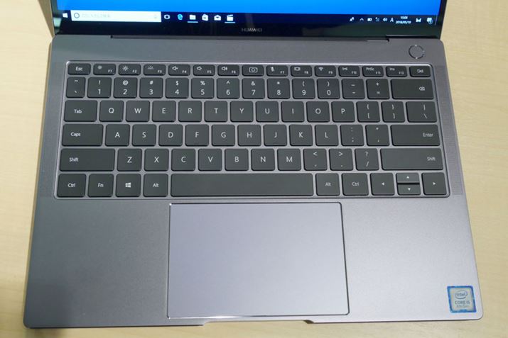 「MateBook D」のキーボード。右上の電源ボタンは、指紋認証には対応していない