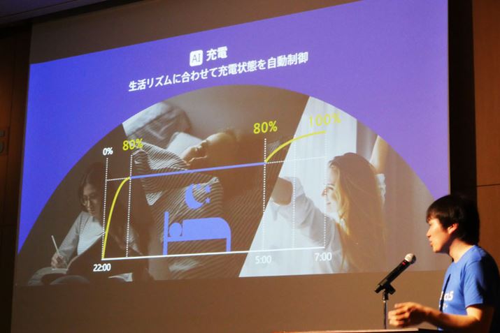 「AI充電」は、朝7時にちょうど満充電にするなど、ユーザーの生活リズムに合わせて充電しバッテリー劣化を防ぐ機能だ